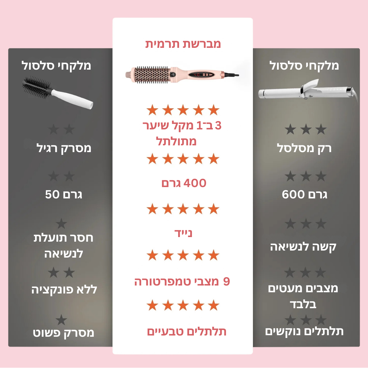 מברשת תרמית 3-ב-1 פרו עם יונים שליליים ושני גופי חימום