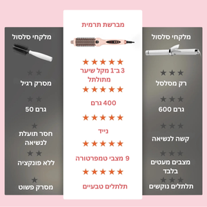 זה מוצר נהדר, אני מעבירה אותו פעם אחת בשיער המתולתל שלי והוא הופך לחלק ונותן אפקט של פן, הופך את השיער שלי למבריק ואין לכלי שום רעש בכלל